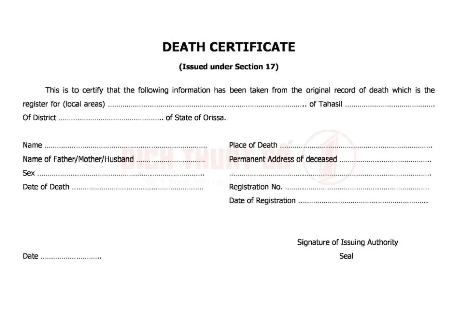 - Bản gốc giấy chứng tử đã được chứng nhận