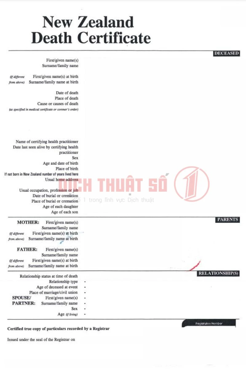 Nếu bạn đang cần hợp pháp hóa lãnh sự giấy chứng tử New Zealand để sử dụng tại Việt Nam. Dịch Thuật Số 1 sẽ là đơn vị đồng hành đáng tin cậy, giúp bạn hoàn thiện hồ sơ đúng quy định và an tâm trong mọi thủ tục pháp lý. Liên hệ ngay để được tư vấn trọn gói.