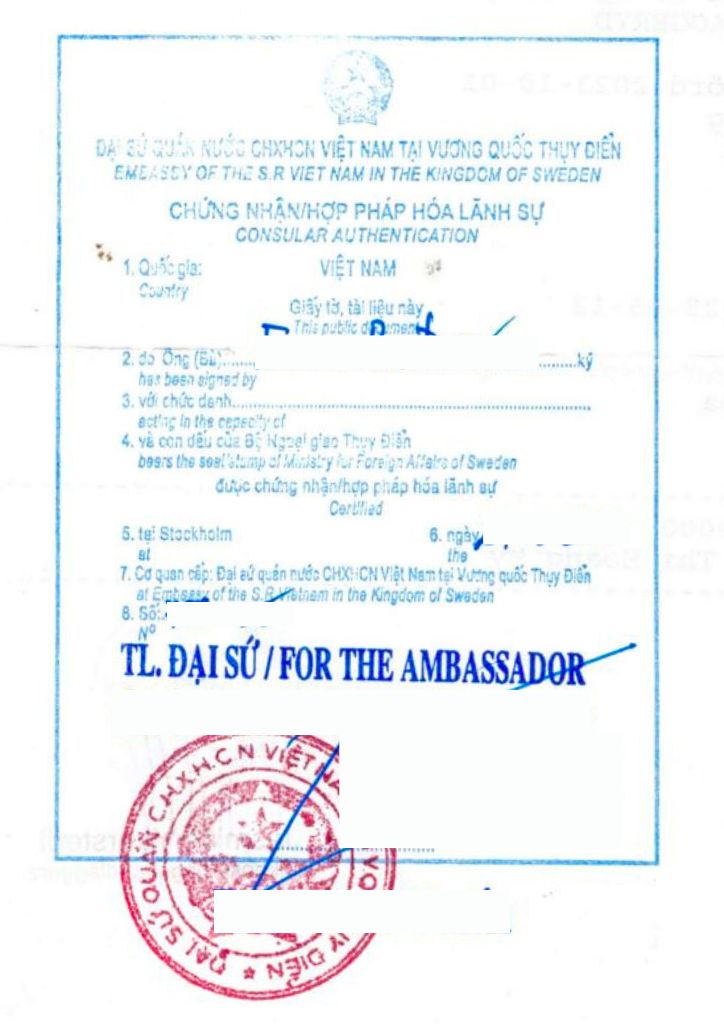 >> Xem thêm: Dịch Vụ Hợp Pháp Hóa Lãnh Sự Thụy Điển (Sweden) Trọn Gói.