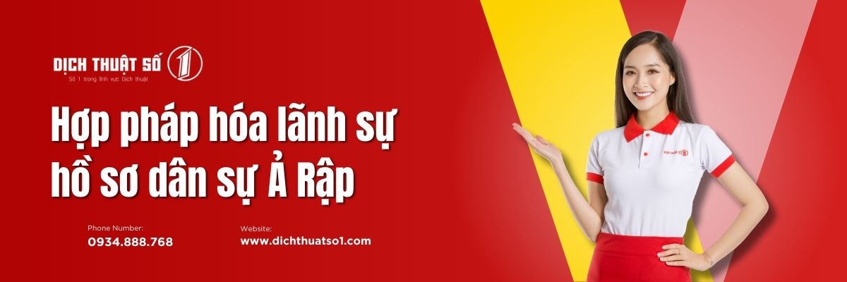 Nếu bạn đang cần hợp thức hóa lãnh sự hồ sơ dân sự Ả Rập để có thể sử dụng hợp pháp tại Việt Nam. Dịch Thuật Số 1 là lựa chọn đáng tin cậy với dịch vụ trọn gói, chuyên nghiệp và chi phí rõ ràng.