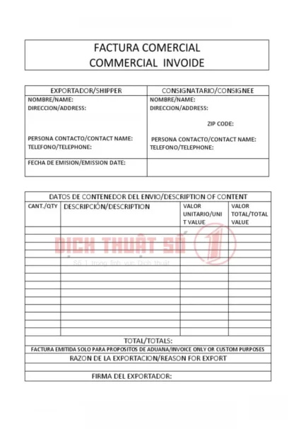 Dịch Vụ Hợp Pháp Hóa Lãnh Sự Hóa Đơn Thương Mại Tây Ban Nha Trọn Gói Tại Dịch Thuật Số 1