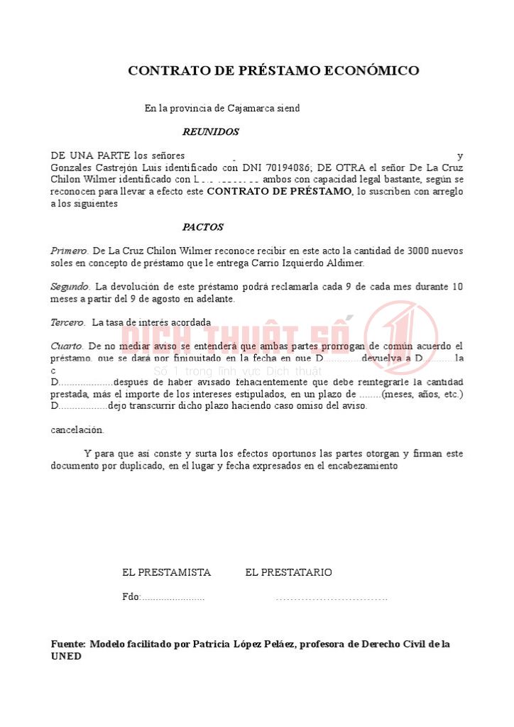 Trong trường hợp hợp đồng chỉ có tiếng Việt hoặc tiếng Anh, cần dịch sang tiếng Tây Ban Nha và công chứng bản dịch. Bản dịch này sẽ được sử dụng kèm với bản hợp đồng đã hợp pháp hóa khi nộp cho các cơ quan, tổ chức tại Tây Ban Nha.