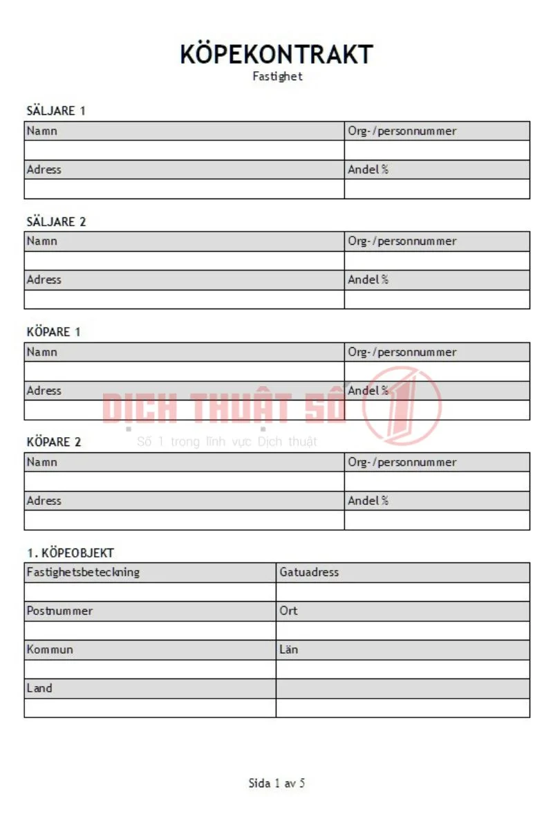 Bước 1: Xin Cấp Hợp Đồng Mua Bán Tại Thụy Điển