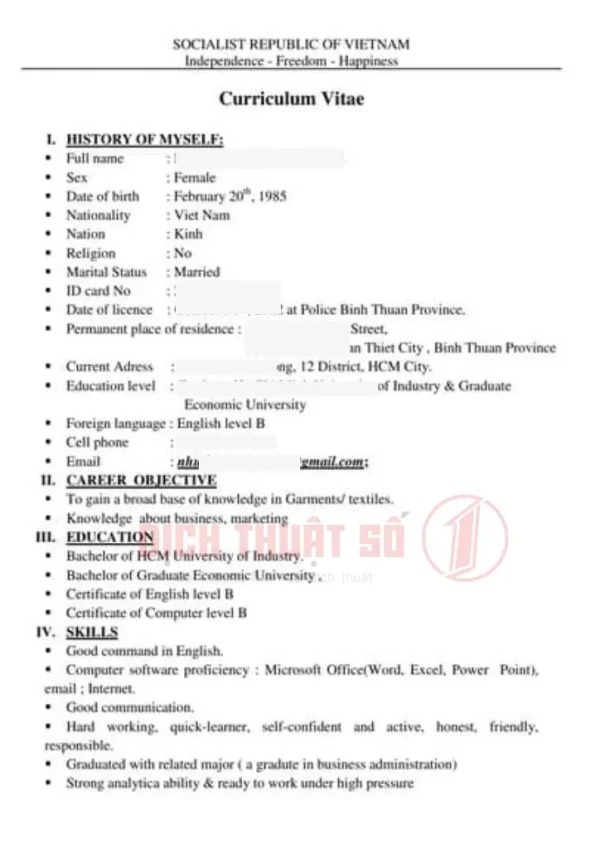 - Dịch thuật công chứng chuẩn xác nếu sơ yếu lý lịch cần dịch sang tiếng Việt hoặc tiếng Anh.