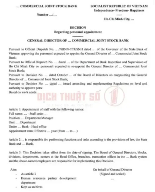 Trước tiên, Thư bổ nhiệm cần được dịch sang tiếng Anh – ngôn ngữ chính thức được chấp nhận tại Singapore. Các tài liệu cần dịch bao gồm: