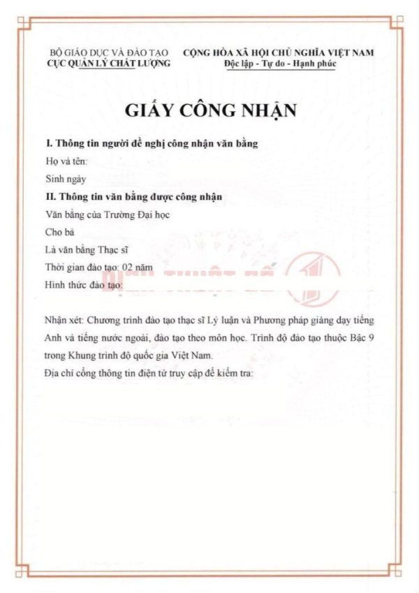 >> Xem thêm: Dịch Vụ Công Nhận Văn Bằng Thạc Sĩ Nước Ngoài Nhanh Chóng, Hợp Pháp.
