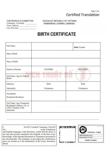 >> Xem thêm: Dịch Thuật Giấy Khai Sinh Có Chứng Nhận NAATI Uy Tín Tại Dịch Thuật Số 1.